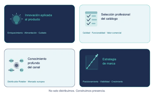 Somos el nuevo partner estratégico para marcas y distribuidores del sector pet en Europa. Conectamos innovación, producto y mercado con un objetivo claro: impulsar el crecimiento del canal profesional y llevar las mejores soluciones al mercado europeo.